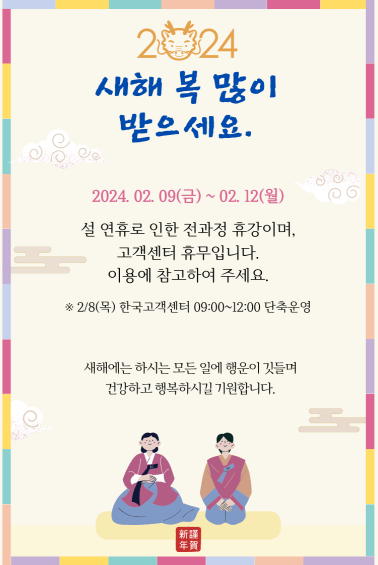 2024년 설 연휴 휴강 안내