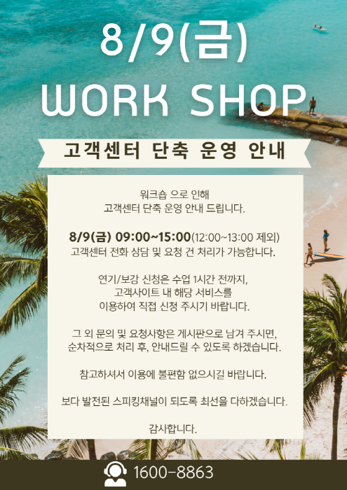 8/9(금) 한국 고객센터 단축 운영 안내