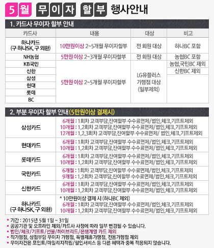 2015년 5월 무이자 할부 행사안내