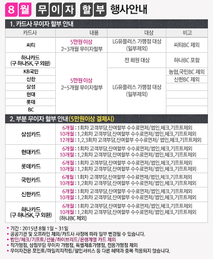 2015년 8월 무이자 할부 행사안내